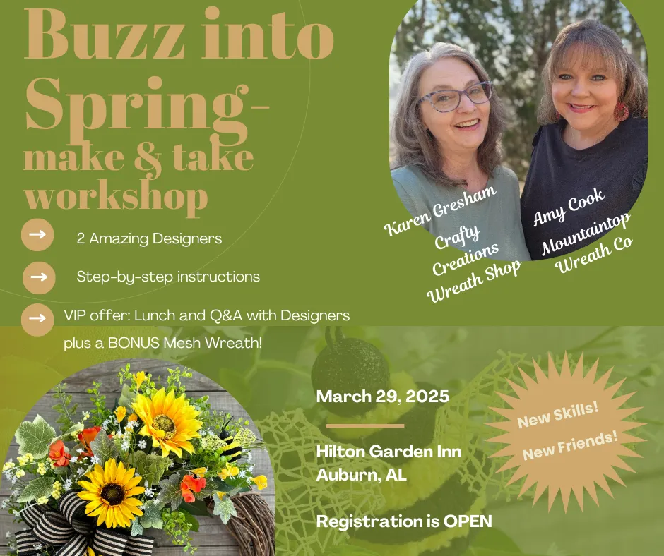 Exclusive Lunch with Designers: VIP participants will enjoy a private lunch with Karen and Amy, providing a great opportunity to ask questions about wreath design, the best materials to use, and tips on selling handmade items.